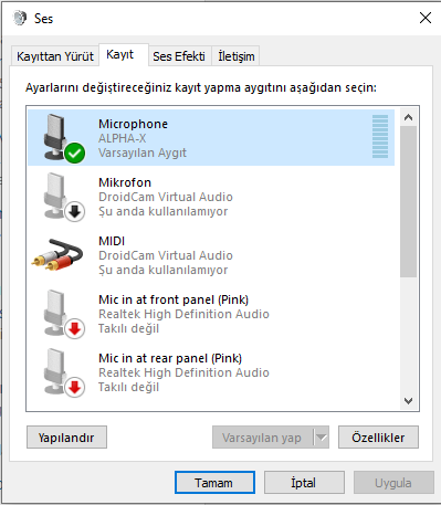 Dün takır takır çalışan mikrofonum bugün çalışmıyor denetim masasındaki ses kayıt kısmında mikrofon gözüküyor ama ses gelmiyor. Mikrofonda sorun yok başka bir bilgisayarda denedim çalışıyordu ama nedense kendi bilgisayayarımda çalışmıyor.