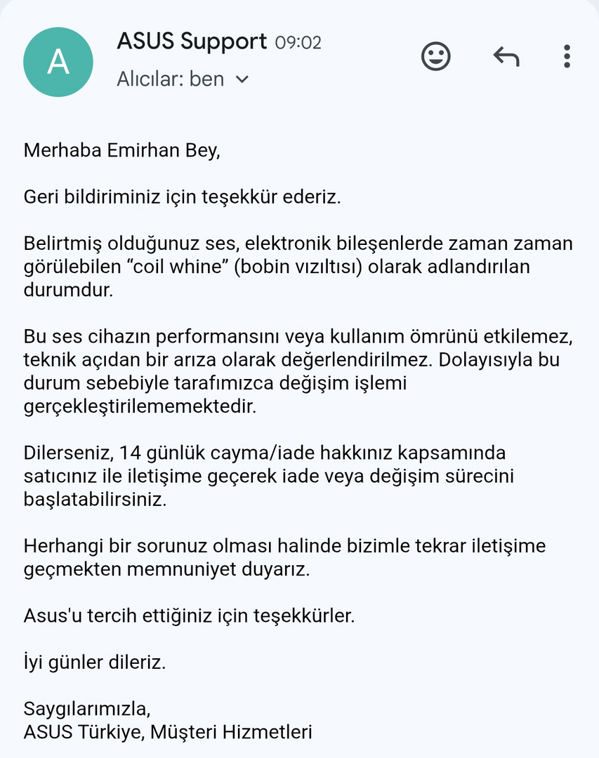 Hocam ben bunu iade edeceğim ya, sorunun kaynağını buldum, bobinler ya da transistörler dandik veya bozuk, klave ışığını arttırdıkça sesin frekansı değişiyor, azalıyor, çoğalıyor, bildiniz kusurlu yani ama şöyle ki fiyatı değişecek son 1 saati kaldı, buna değişim alma ihtimalim var mı, asus bu sese değişim verir mi sizce, sesi buradan dinleyebilirsini, videoda klavye ışık seviyesini de değiştirdim ses bariz belli oluyor.