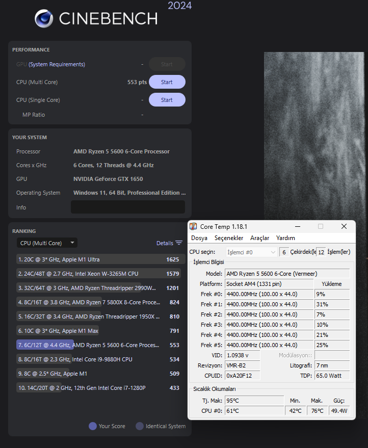 Cinebench testinde durum bu. Prime95 testinde ısınma Cinebench kadar olmadı ama çok fazla kasma oldu en sonunda bilgisayar kendi kendine yeniden başlattı.