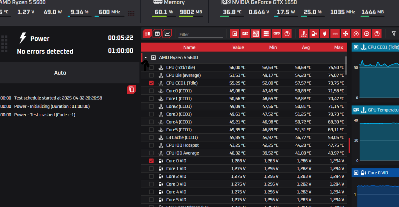 Denedim birkaç kere bilgisayar yeniden başlat attı sorun işlemci ısınmasından diye düşündüm undervolt ile 1100 Volta düşürdüm işlemci voltajını 4.4GHz de bıraktım yeniden test yaptım yine aynı şekilde yeniden başlattı before crash SS'i budur.