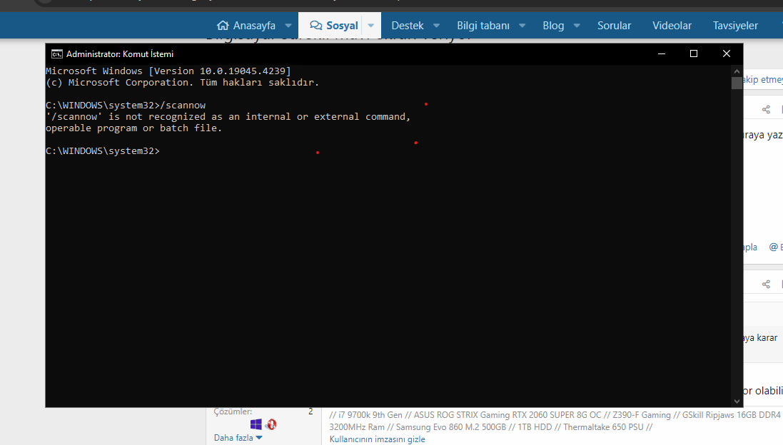 Kodu yanlış girmişssiniz /scannow değil sfc /scannow