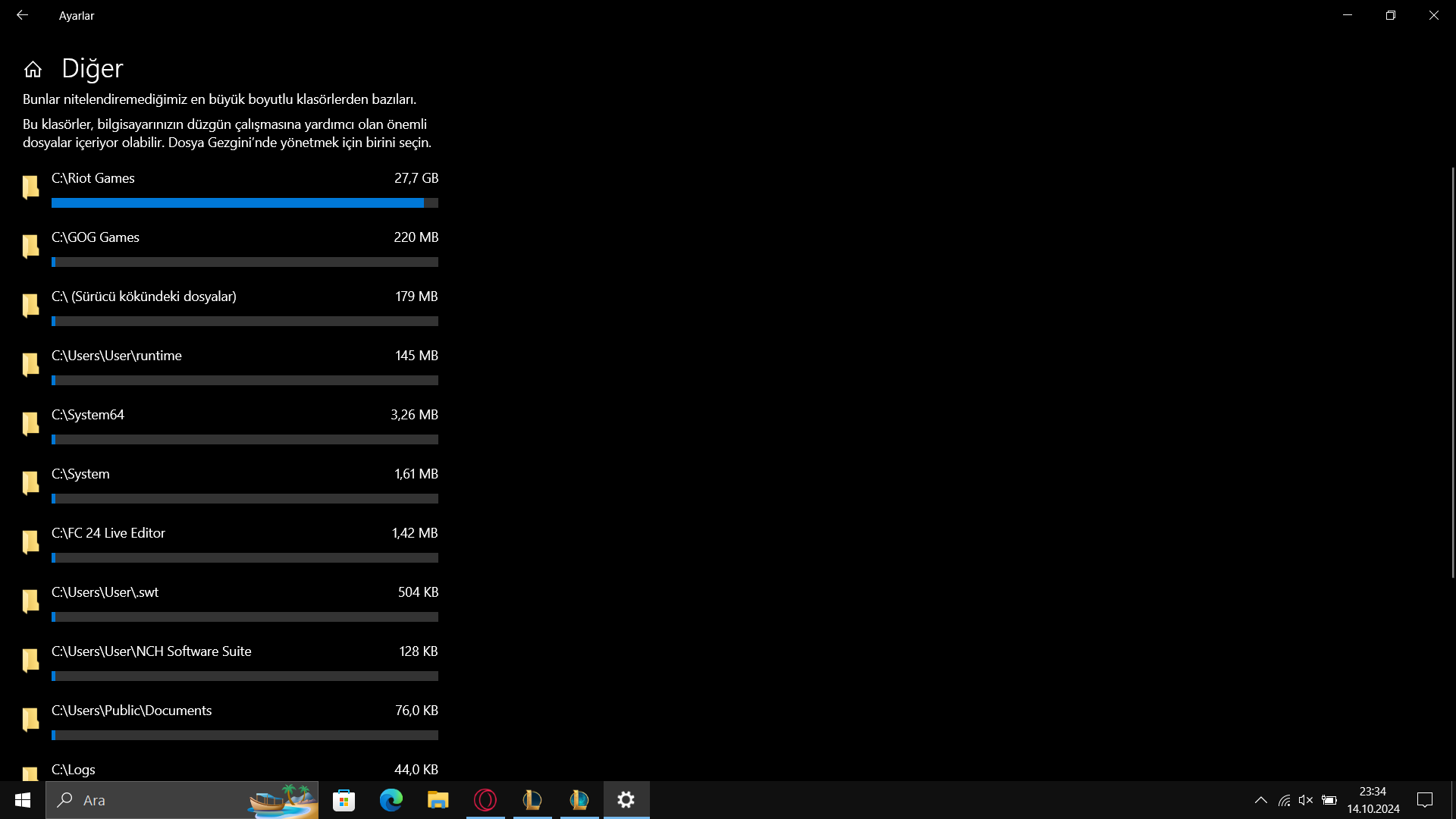 uygulamalar ve özellikler kısmına girip sıralama ölçütünü boyuta ayarla ve ekran görüntüsü atYaptım.