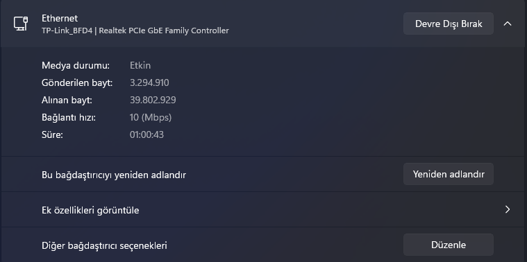 Son 1 haftada bilgisayarımdaki hız 10 Mbps'e düştü. Telefonda herhangi bir sorun yok, 80 Mbps'e kadar alabiliyorum. Servis sağlayıcısıyla görüştüm herhangi bir sorun gözükmüyor dedi. Bağdaştırıcı seçeneklerini kurcalayıp hızı arttırıyorum ama PC kapatıp açınca yine 10'a düşüyor. Neden böyle oluyor?