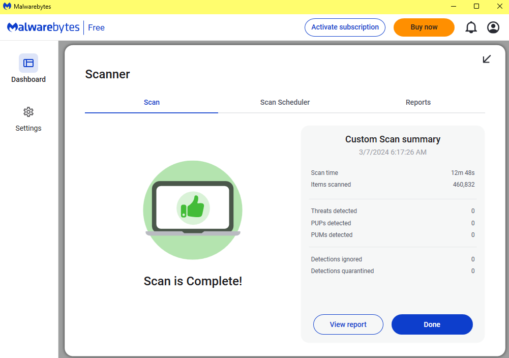 Malwarebytes testi.