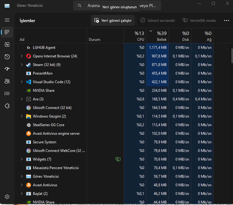 Merhaba arkadaşlar, ekte de belirttiğim gibi bilgisayarım çok RAM kullanıyor ve oyunlara etkisi çok alıyor hangi oyunu açsam kaldırır dediğim bilgisayarda 30 40 FPS aralığından çıkamıyorum herhangi bir oyunda. 32 GB RAM'im var ve hiçbir şey açık değilken %40ı dolu gözüküyor.