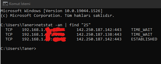 Haftalar önce yeni bir PC topladım ve M.2 SSD aldığım için Windows'u M.2'ye yükledim ancak etkinleştirme yaparken CMD'den Google'dan bulduğum Windows 10 Home Key ile etkinleştirdim ve o günden beri her türlü uygulamam, mailim, oyun şifrelerim, Steam, Epic Games ne varsa giriş yapıldı ve mail üzerinden uyarı aldım. Tabii hemen şifre değiştirdim bunun üzerine 2'li doğrulama yaptım onlar da yetmedi sadece telefondan parmak izi onaylamayla maillere girişi aktif ettim. Üstüne üstlük bir de CMD'den etkinleştirmeyi kaldırdım ancak sürekli kendini tekrardan aktifleştiriyor sağ altta Windows'u etkinleştir yazısı olmasına rağmen CMD'de aktif gözüküyor. Bugün yine uyarı aldım 1 mail hesabıma yine girildi ve "Otomatik Eşitleme" yapılmıştı. Ben de haklı olarak keylogger olduğunu düşünerek CMD'den netstat -an find "25" bu komutla arattığımda görseldeki sonuçları aldım normalde boş olması gerekiyormuş bunları nasıl silerim bunlar nedir beni bir aydınlatır mısınız?