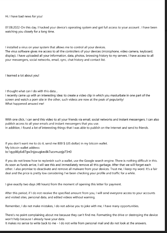 Merhaba arkadaşlar, bilgisayarımın hacklendiğine dair bir mail aldım az önce. Bir ekran görüntüsü ve bir PDF ile maili yollamış. Fakat bu ekran görüntüsündeki bilgisayar bana ait değil. Kaspersky VPN'i daha önce hiç kurmadım bile. Bu durum hakkında bilgisi olan var mıdır? Bana oltalama maili gibi geldi. Ben dahil birçok arkadaşıma aynı maili atmışlar. Mesajın başlığında uzun bir kod var ne olduğunu bilmiyorum. Yardımcı olursanız çok sevinirim.