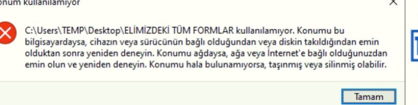 Ekte paylaştığım resimde verilerim c>kullanıcılar>temp>masaüstünde gözüküyor ve tıklayınca açılmıyor.