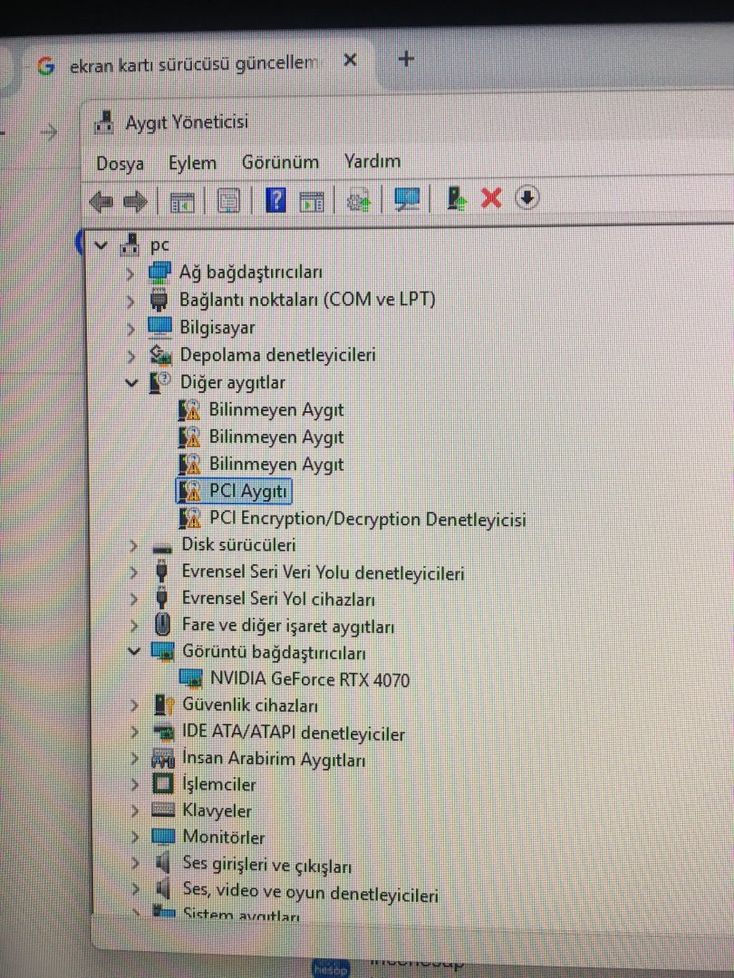 Sağ tıkla, özellikler, ayrıntılar, donanım kimliğini kopyala ve Google'a yaz. Ardından çıkan sürücüleri yükle. Yardım lazım olursa donanım kimliklerini bana at sana linklerini atarım.Merhaba, Aygıt Yöneticisi, diğer aygıtlar kısmından bilinmeyen aygıt var dört tane, görüntüsünü ekledim. Nasıl çözebilirim bu sorunu?