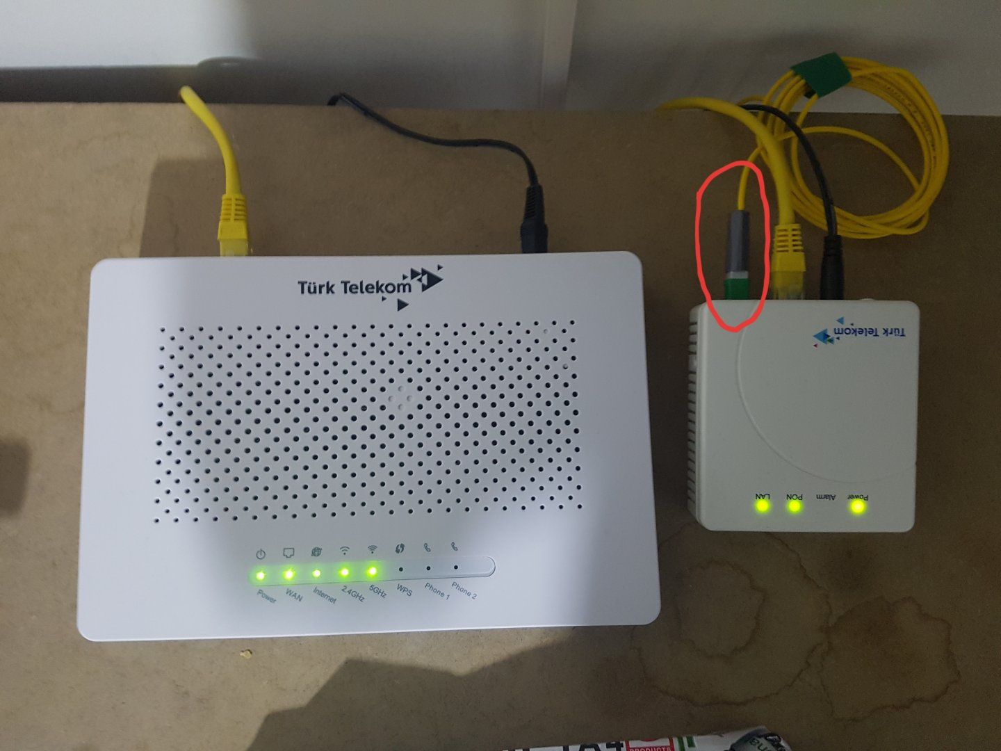 Bugün Telekom sitesinde kontrol ettiğim de fiber hizmet alabilirsiniz bilgisine ulaştım. Lakin kutuda sarı kablo falan yok. Beyaz bir kablo takılı aynen şu resimdeki gibi.