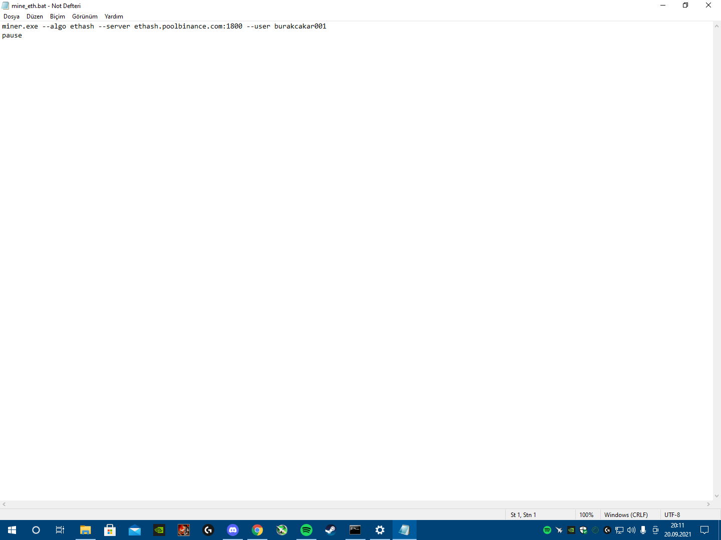 Ana sayfa üzerinden madencilik URL'sini alırken stratum+tcp://ethash.poolbinance.com:1800 şeklinde alıyorum.