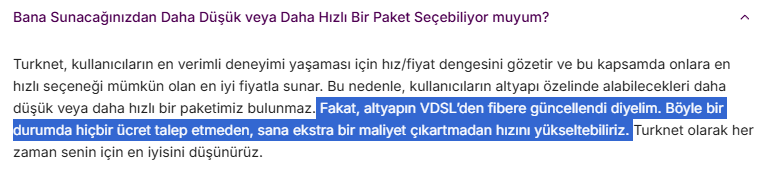Bu arada şimdi bakarken gördüm. Sayfalarında şöyle bir yazı var. Buna istinaden VDSL'den fibere geçiş yaparken tekrar kurulum ücreti alınmıyor olabileceğini düşünüyorum.