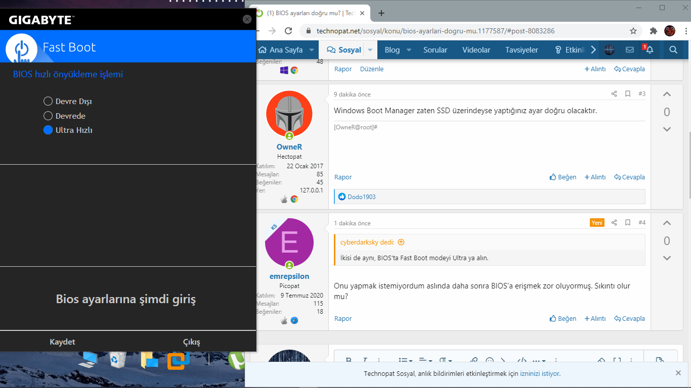 BiostarAnakartın Gigabyte ise bios'a program sayesinde ulaşabiliyorsunEki Görüntüle 754231