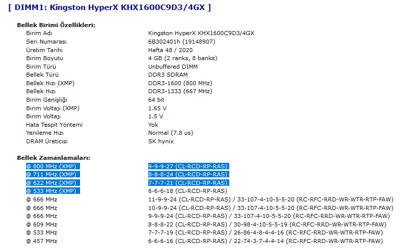 Anakartın tam olarak modeli belli değil. O yüzden XMP destekliyor mu tam olarak bilmiyorum. Ama AIDA64 HTML raporunda gözüme bir şey çarptı -ekran görüntülerini paylaştım-.