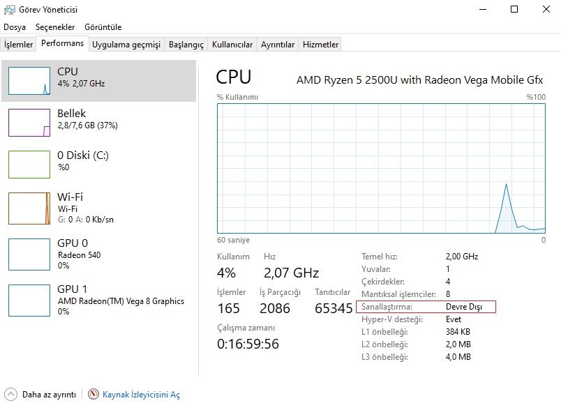 aktifmiş sanırımGörev yöneticisinden görsel at gösterdiğim biçimde .