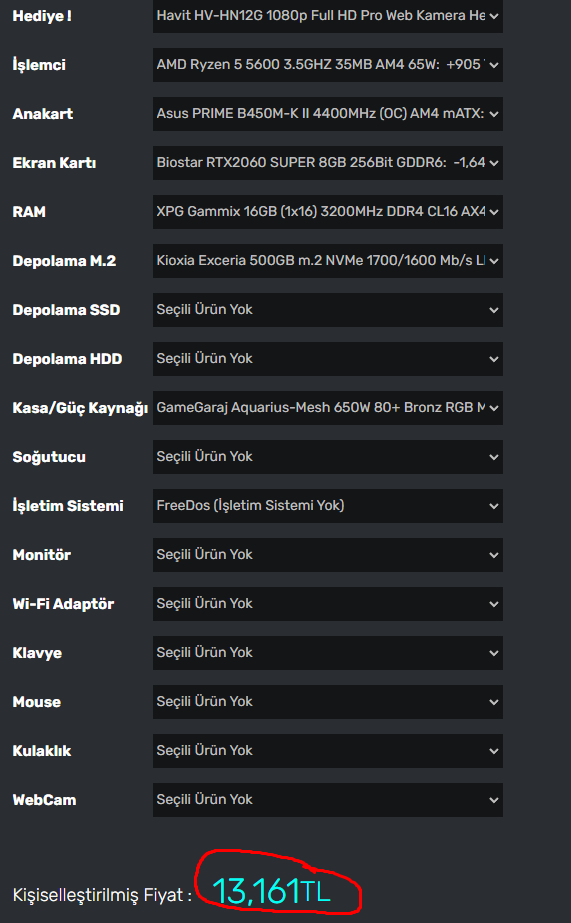 Bu fiyata bu sistem alınmaz sakın böyle bir hata yapmayın. Bu sistem hem 1000 TL daha uygun hem kat be kat daha performanslı: Souldash [webtekno] | AMD Ryzen 5 5500 | 2 x 8 GB DDR4 | Radeon RX 6600 8 GB | 512 GB SSD Oyuncu Bilgisayarı - incehesap.com alabilirsiniz. @JearNorm