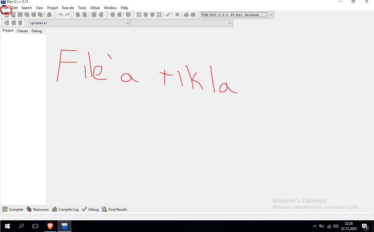 Hocam Dev C++ açılınca kenardan Files'a tıklayın ardından orada en üstte New seçeneğine tıklayın orada project var ona basın.
