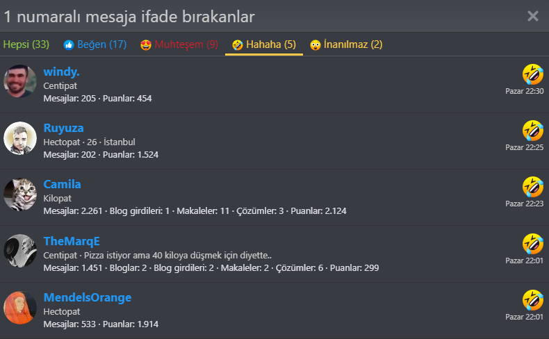 Yani şimdi, raporla o zaman diyebilirsiniz ancak tek tek bütün mesajları gezebilecek bir insan değilim. Eğer daha katı bir şekilde kurallar uygulanırsa, bu tür mesajlara rapor atmama bile gerek kalmaz. Üstüne, siyasi tartışmaya kayan mesajları raporladığım zaman da pek geri dönüş alamıyorum. Üstüne, geçen ısrarla uygunsuz profil fotoğrafı koyan birini raporladım ve 5. raporda anca profil fotoğrafı kalktı