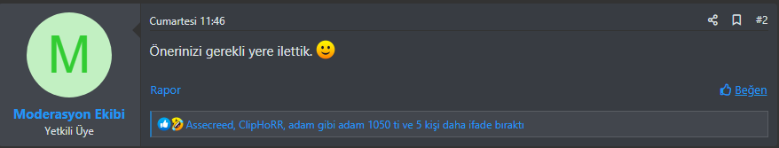 Bir diğer olay ise, moderatörlerin sürekli ''belli üyeler sürekli isyan konusu açıyor'' demesi var. Yani, bu tür konu açan üyeleri ne zannediyorlar bilmiyorum ama, bu üyeler forumun iyiliğini istiyorlar ve içlerini döküyorlar. Buna sevinmeleri gerekirken, maalesef kızıyorlar. Bu üyeler, seri katil falan değil. ''Bazı üyeler'' deyip ötekileştirmenize gerek yok. Yani, bunu zamanında olan beğeni olayı yüzünden yapıyorsanız, komiksiniz. O beğeni olayı hakkında hala tam bir açıklama veya kanıt gelmedi. Gerçekten beğeni kasan üyeler göz ardı edilip, diğer üyelere sallanmıştı.