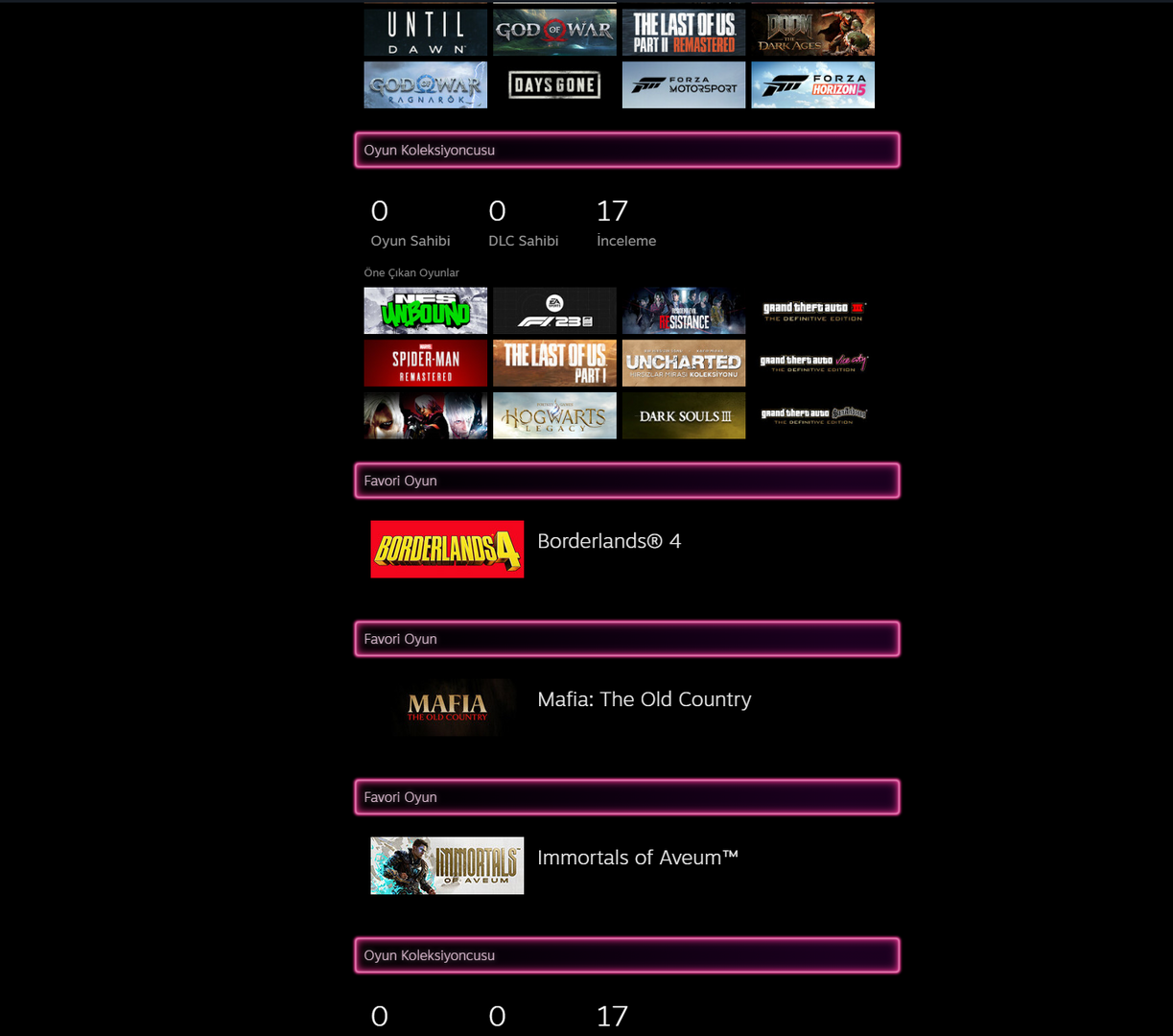 Steam'de normalde bir vitrini en fazla iki kere kullanabiliyoruz, ancak bu kişide birçok vitrin üç kere kullanılmış.