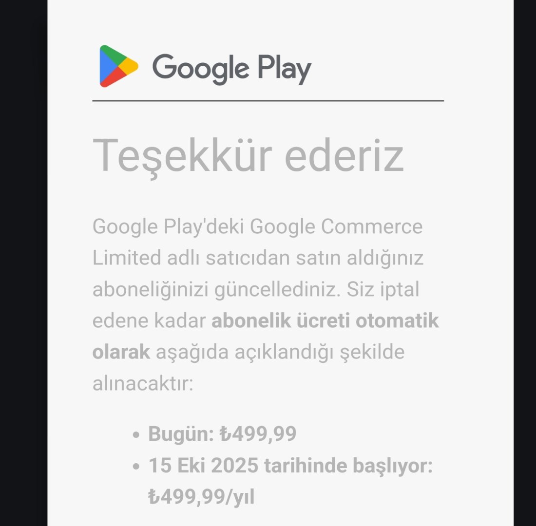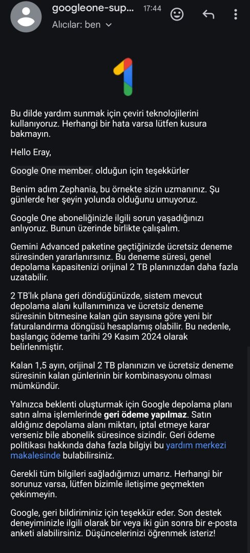 Aynı gün bir aylık Gemini Advanced deneme üyeliğine geçiş yaptım birkaç saat denedim ve eski paketime geri dönmek istedim geri dönmeye çalıştığımda bir yıllık aboneliğime 29 Kasım 2024 tarihinde yani 2 ay sonra tekrar ücret ödemem gerektiği yazıyor.