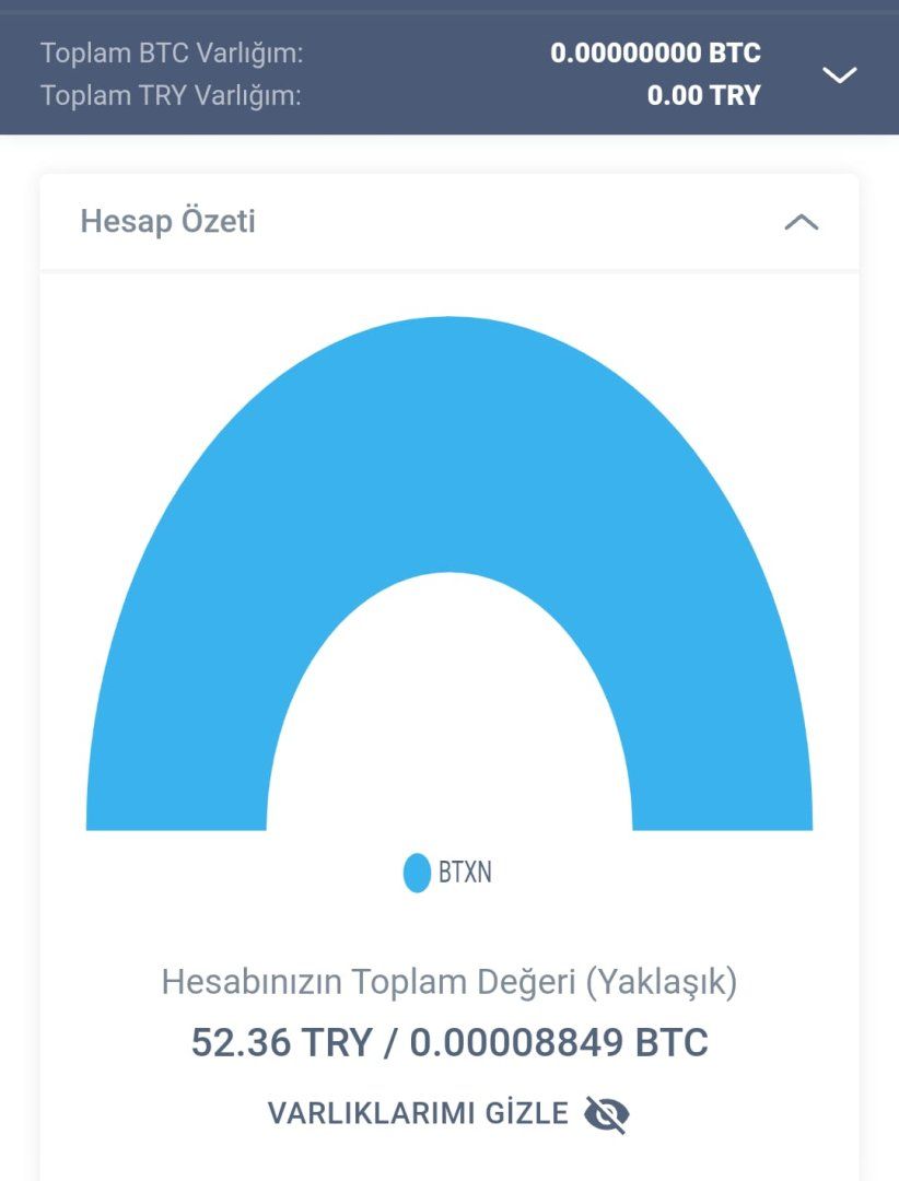 Merhaba zamanında yeni üyeliklere böyle bir kampanya varken yapmış ve çekmemiştim hesabımda 2 btxn var işlem ücreti olarak da 5 btxn istiyor minimum 10 btxn çekilir diyor anlamadım bir türlü şimdi çekeyim diyorum varlıklarımda 52 lira gözüküyor gördüğünüz gibi bunu nasıl çekebilirim?