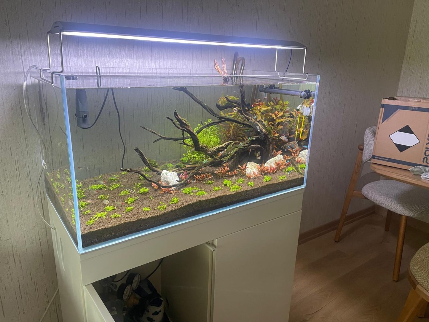 Sonunda istediğim daha önce ki konumda da bahsetmiş olduğum bitkili akvaryumun kurulumunu gerçekleştirdim, zeminde kullandığım substrat ve zemin kumu olsun aydınlatma ve filtre olsun çok içime sinen bir kurulum oldu.