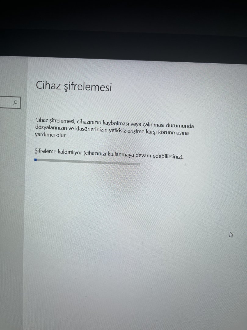 Ayarlardan BitLocker'ı kapattım fakat 15 dakikadır kapanmadı. Fotoğraftaki şekilde durdu.