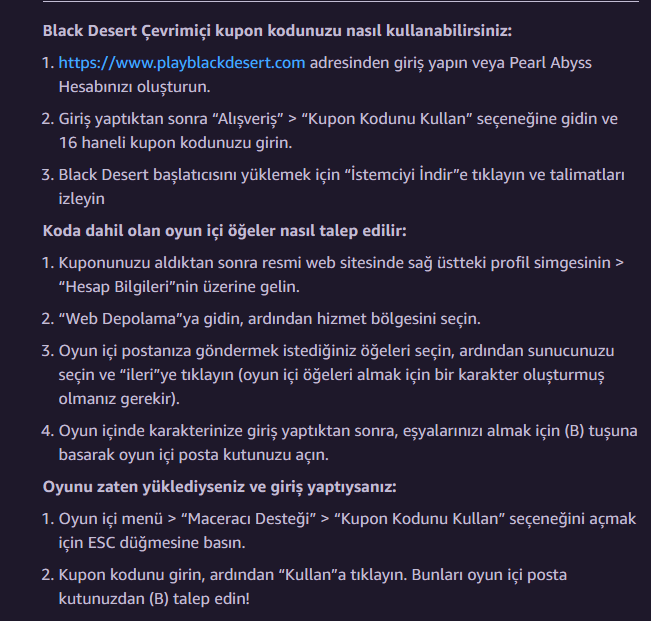 Amazon Prime Black Desert kodu dağıtıyor. Oynamadığım ve halihazırda Steam'de sahip olduğum için kodu buradan paylaşıyorum. Umarım ihtiyacı olan bir arkadaşımıza gider. Herkese iyi sosyaller.