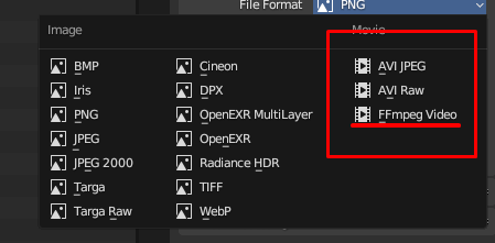 PNG kısmına tıklayınca FFmpeg Video: