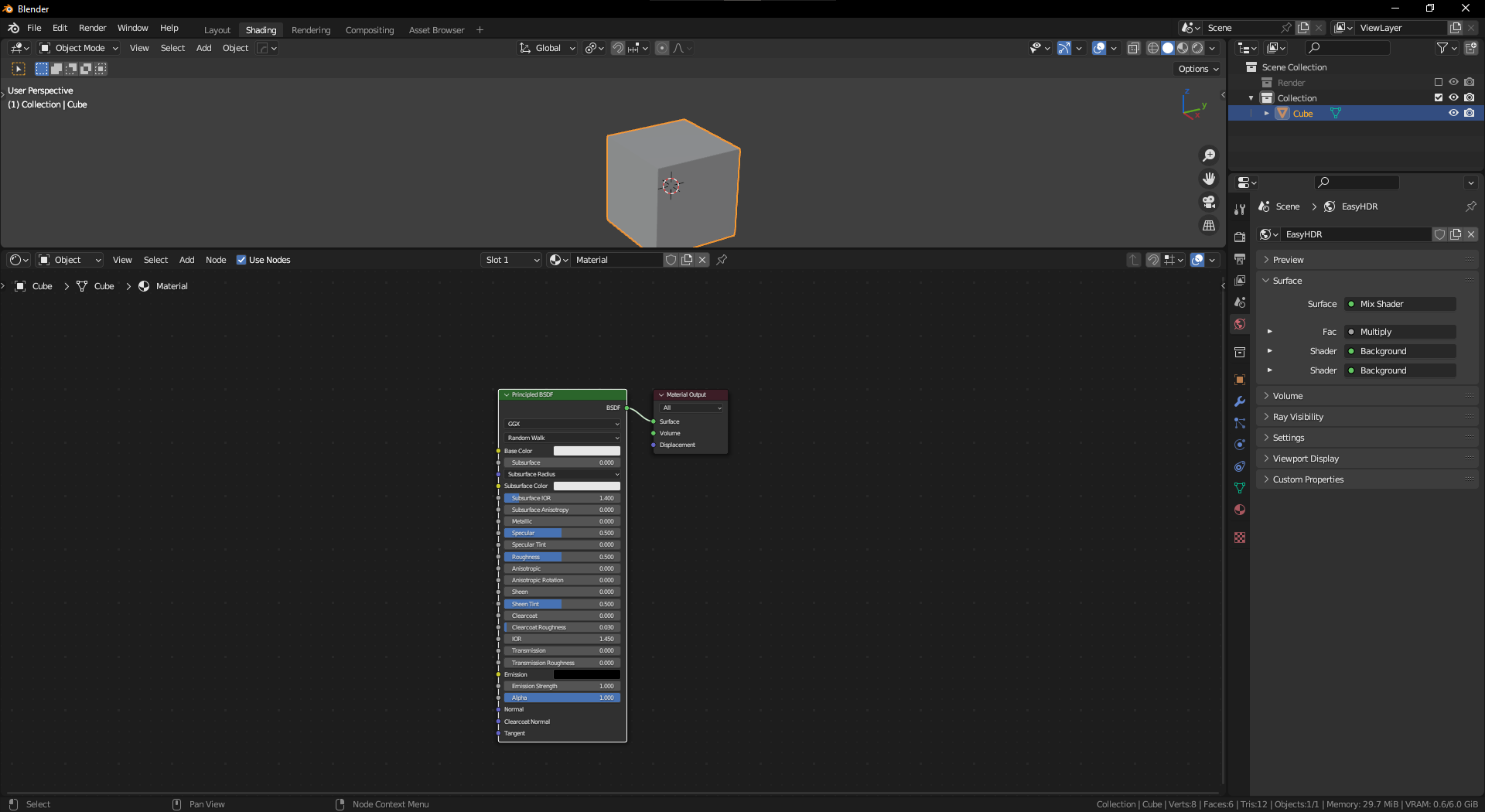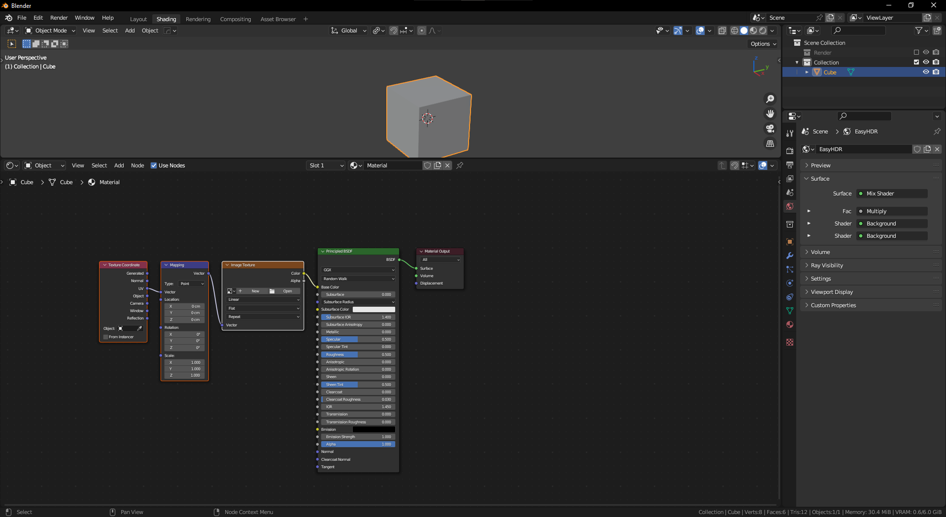 Bunun dışında sadece CTRL+t yaparsanız basit bir image texture için gerekli Node'ları ekler. (bsdf seçili olacak)