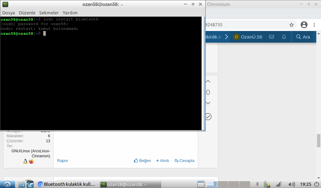 Merhaba, başlıkta belirttiğim gibi Bluetooth kulaklığımı kullanamıyorum. Lubuntu 18.04 kullanmaktayım sürücüler için ayrı bir kurulum gerçekleştirmedim Bluetooth dahil Lubuntu kurulum sonrasında kurulduğu gibi durmaktadır. Bluetooth XP kullanırken cihaz üzerinde ışığı yanmıyorken Lubuntu kurulumunda aktif olmaya başladı bende kullanım sırasında sorun olmayacağını düşünmüştüm dün Bluetooth kulaklığımı bağlamak istediğimde cihaz gözüküyor ama bağlamakta sorun yaşadım. Şu an tekrar denememde ise farklı cihazı görüyorken kulaklığımı görmüyor. Yardımınızı bekliyorum. Farklı bilgisayar veya telefonda rahatlıkla bağlanıyor.