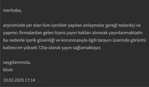 Arkadaşlar bu BluTV'de görüntü kalitesi ayarları nerede? Yoksa standart 720 mi? Standart 720 ise sileceğim hesabı onun yerine IP TV alacağım en azından kaliteli izlerim