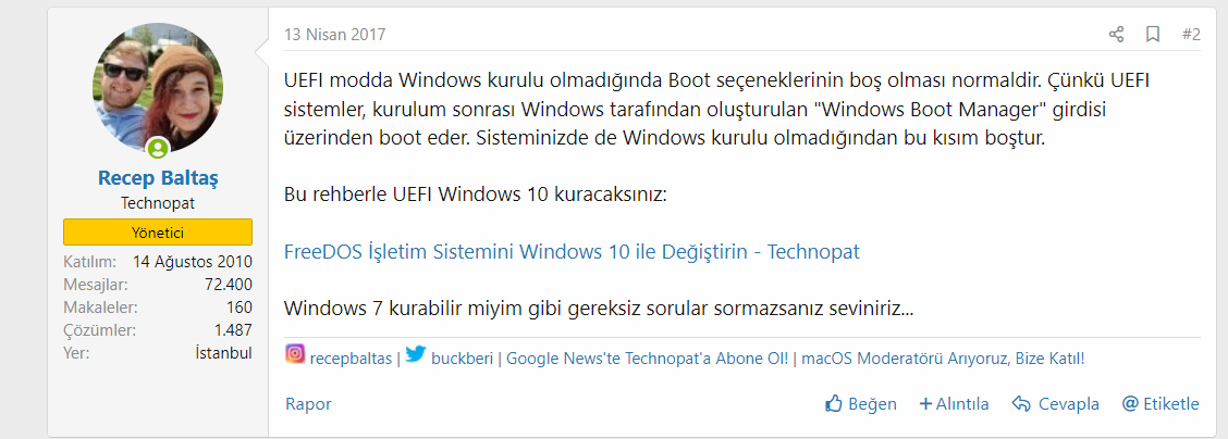 Boot menü boş ama BIOS'a girmek yerine hiçbir şey yapmazsam bilgisayar açılıyor. Grub menüde Windows gittiği için buradan açacaktım ama gördüğünüz gibi boş bunu nasıl çözebilirim?