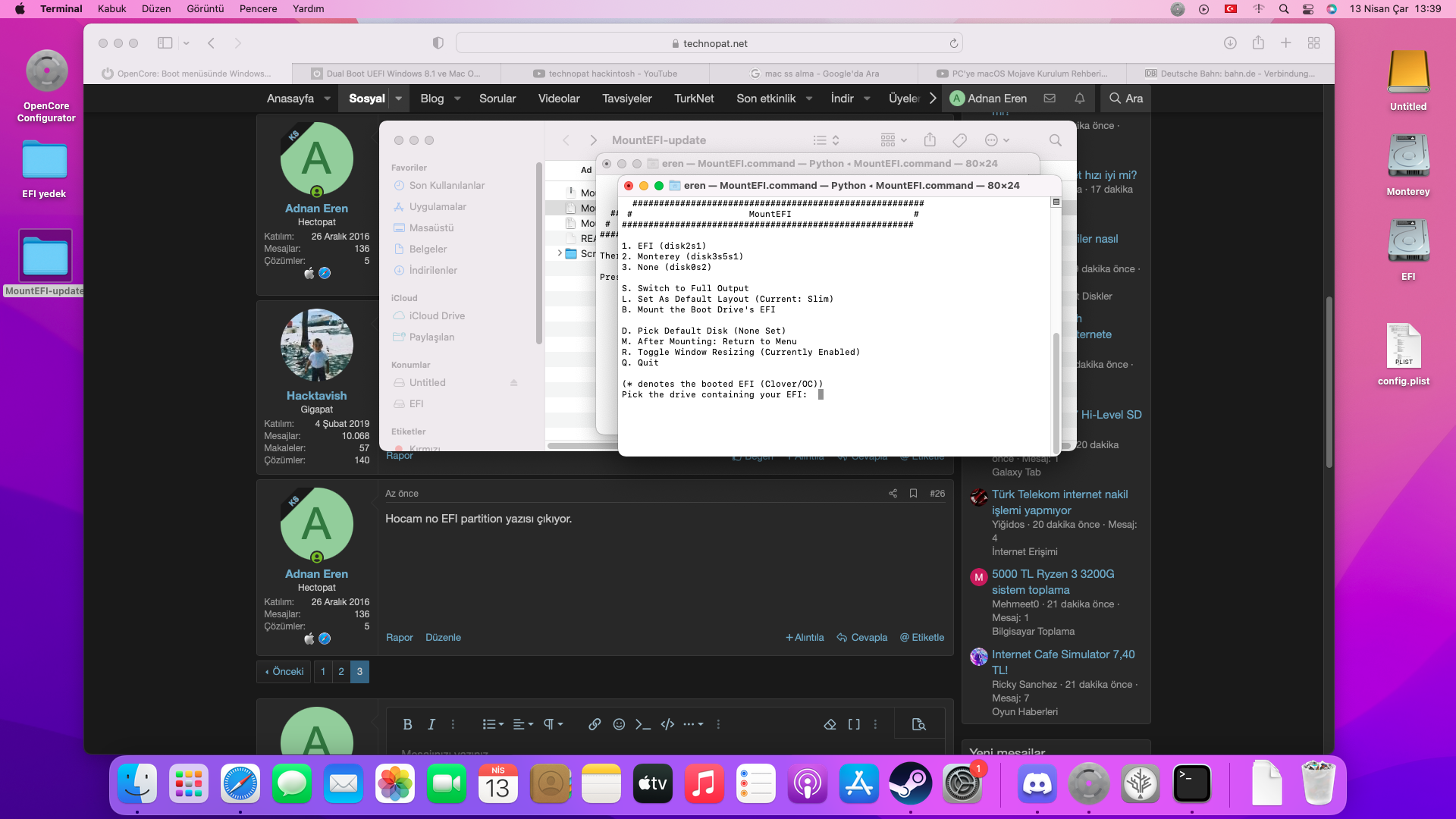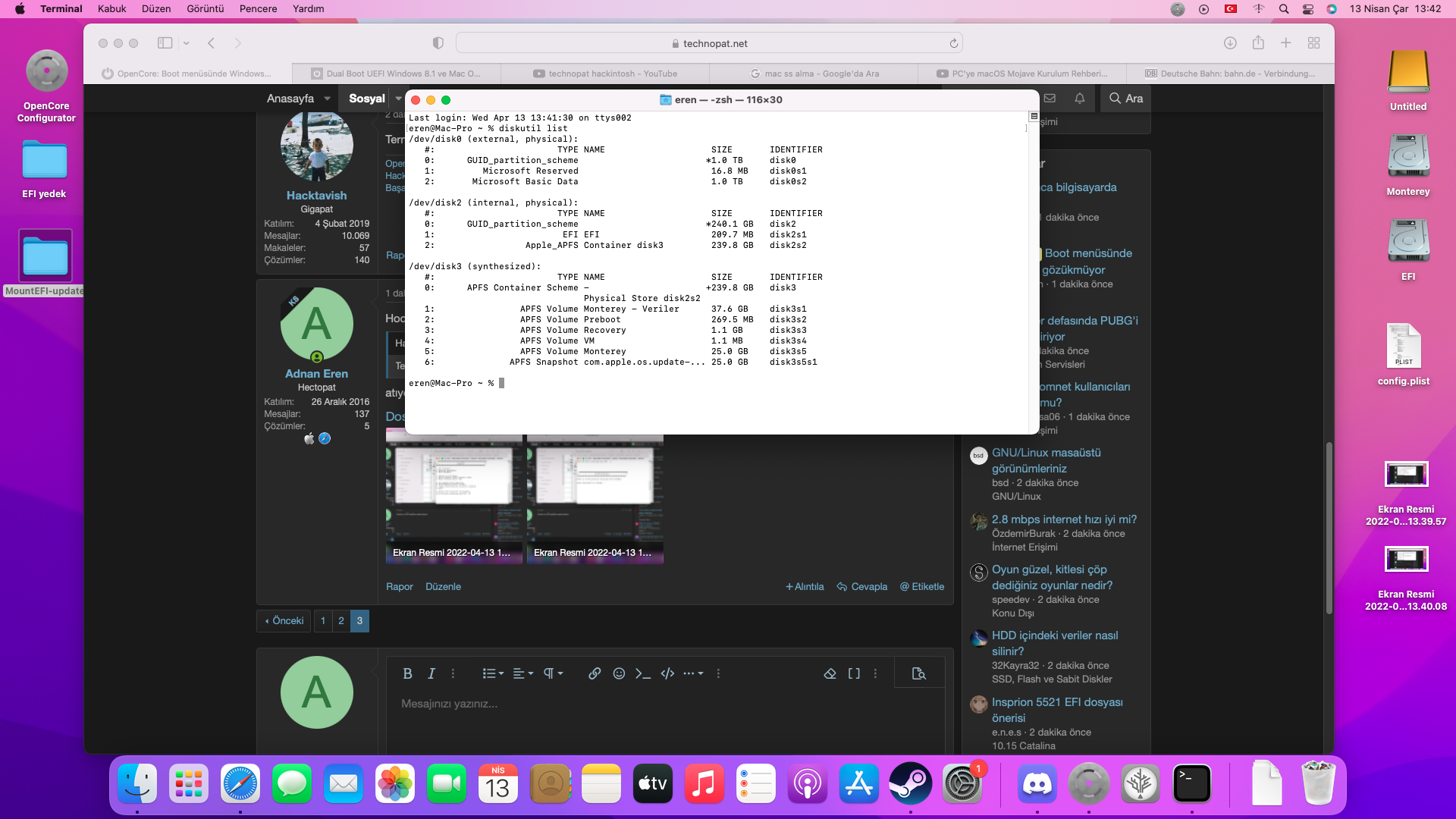 Hocam o değer 0 baktığımda. EFI klasöründe de Microsoft klasörü yok hiç. Dediğim gibi indirdiğim EFI'de de yoktu zaten. İndirdiğim EFI'yi de Crucial SSD'nin yani MacOS yüklü olan diskin EFI'sine kopyaladım. Kopyalarken de SDD'nin EFI klasörü boştu başka bir dosya vs. yoktu hiç. Windows diskinin EFI'sini nasıl göreceğim Windows'u hiçbir şekilde boot edemiyorum. @tristessehivernale hocam yaptığımda boot edilmiyor sistem. Ekrana yazılar çıkıyor boot için bir bellek takıp enter tuşuna basın gibi bir şey yazıyordu.