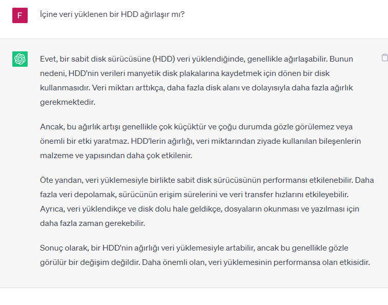 Boş bir HDD veri ile doldurulursa HDD'nin ağırlığı değişir mi?