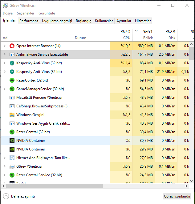 Evet maalesef anlamadığım bir şekilde aşırı ram kullanımı var. Windows 10 çok ram tüketiyor.Razer bende de yüklü, birkaç gündür oyunlardada takılma oluyor bir sormak istedim, CCleaner ve Kaspersky kullanıyorum zaten onun dışı program yok PC'de.