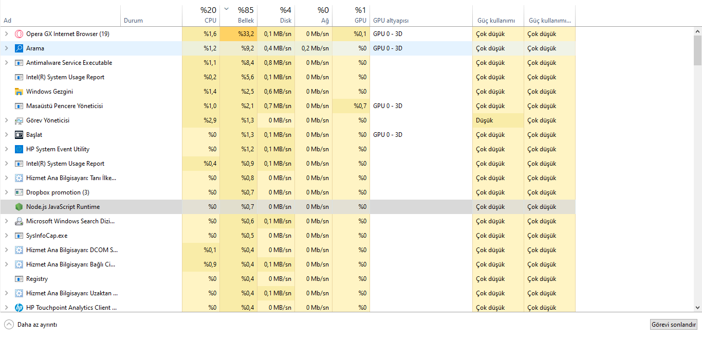 Bilgisayarımda RAM kullanımı boşta %55 Opera GX açıkken %85 oluyor ama bilgisayarım boştayken %55 yiyecek herhangi bir uygulama açık olmamasına rağmen %55 yemesinin bir sebebi var mıdır?