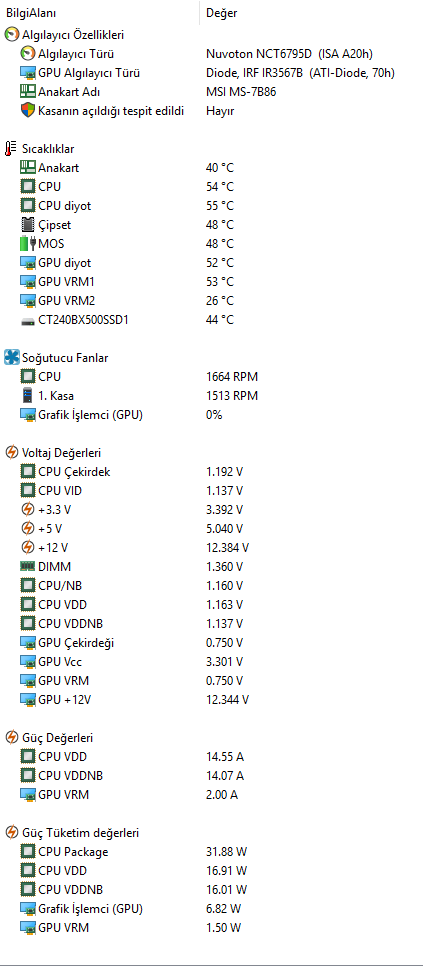 Boştayken CPU ve GPU 54 Derece Civarı
