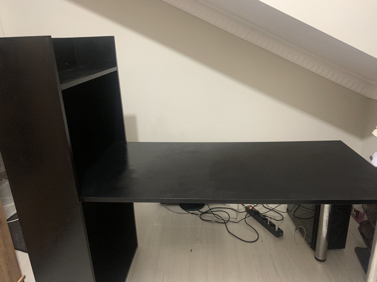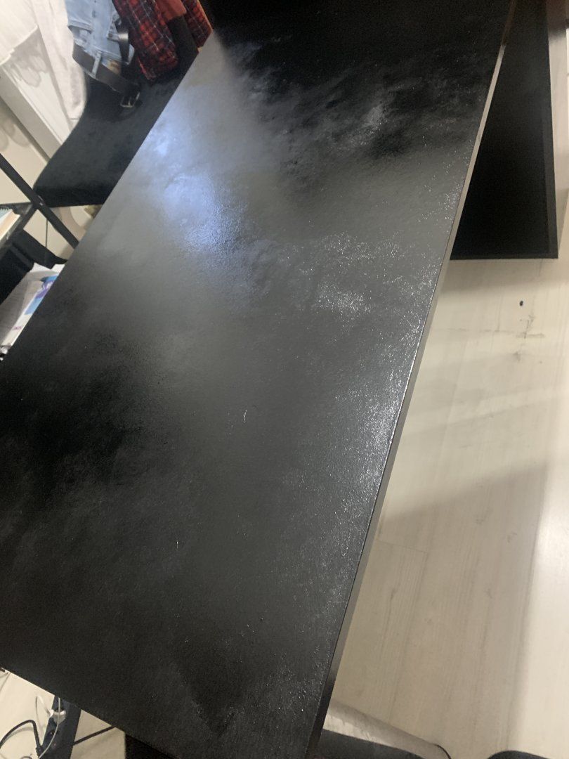 Bilgisayar masamı beyazdan siyaha boyadım. Sıralı olarak, ilk önce zımpara, astar, boya ve yat vernik uyguladım. Parlak gözükmesi ve kalıcı olması için vernik uyguladım. Bu arada, uygulamalar arası 24 saat var.
