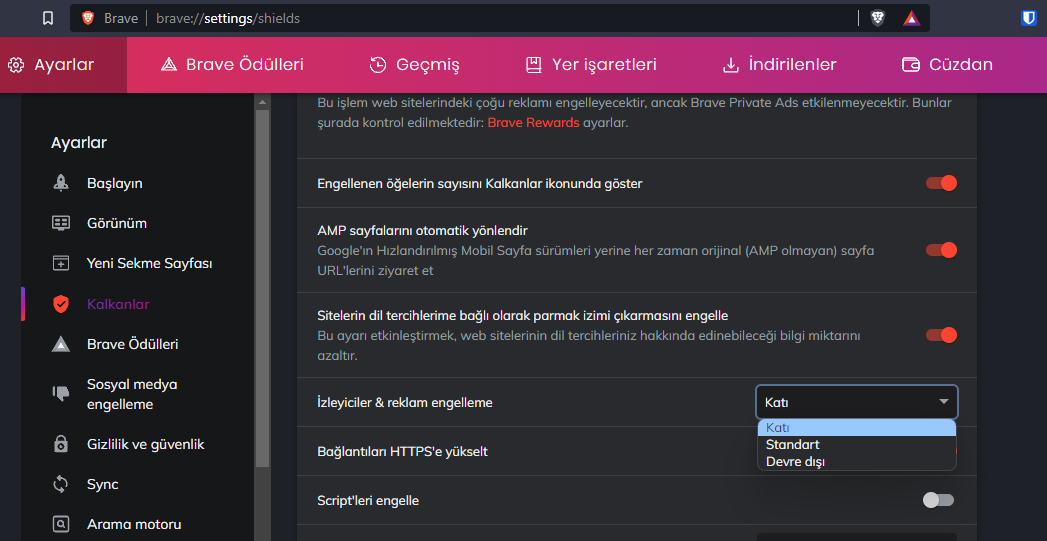 Brave kalkanını katı olarak düzenlemeseniz tam performans vermez.