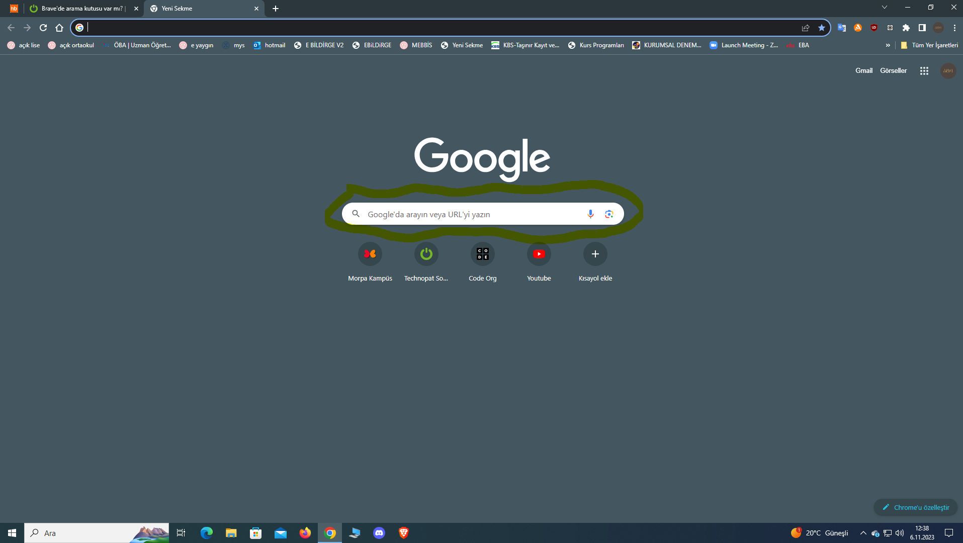 Brave'de arama kutusu var mı?