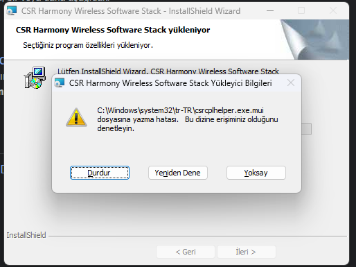 Görseldeki gibi hata alıyorum Bluetooth dongle kurmaya çalışırken bu hatayı veriyor.
