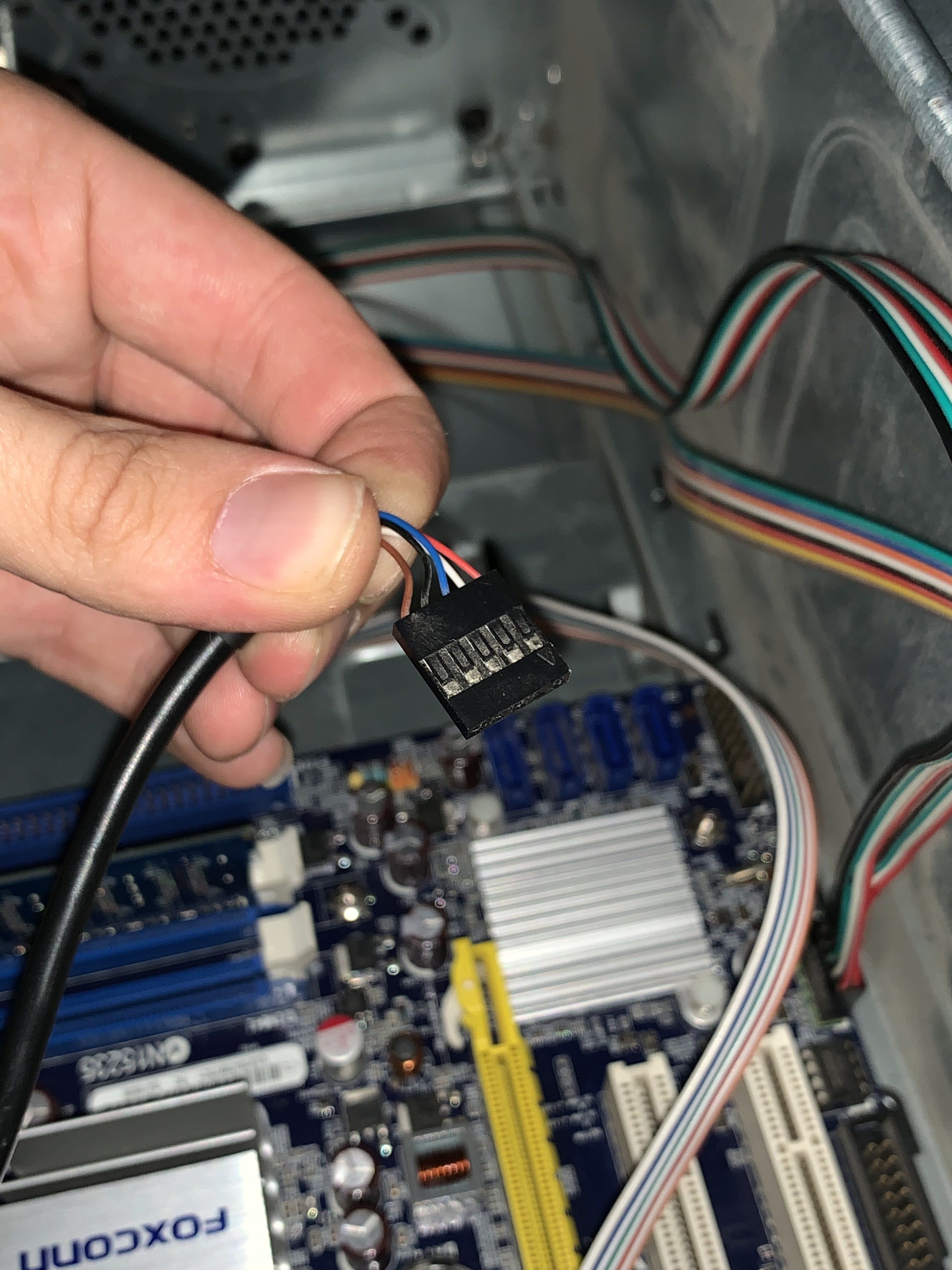 Arkadaşlar Foxconn G41MXE-K anakarta Casper kasanın ön panel bağlantılarını yaparken ilginç bir kabloyla karşılaştım. Kasayı sökmeden önce fotoğraflamıştım ama şimdi takarken anlam veremedim (yine de taktım 🤣). Bu fotoğraftaki 5 pinli ne kablosu oluyor? USB 2.0 portunun üstteki 5 pinli bölümüne takılıyor.