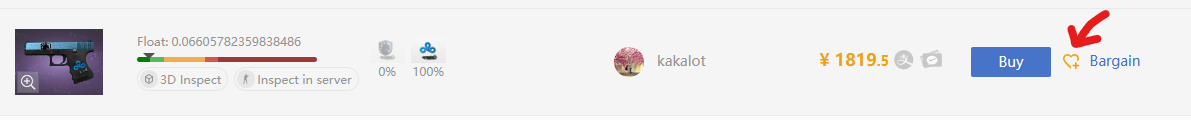 Eğer ki alacağınız skin ¥100 ve üzerindeyse satıcıya pazarlık yapabiliyorsunuz. Bargain attığınız zaman Inventory'e gelip My Bargains kısmından teklifinizi görüntüleyebilir iptal etmek istiyorsanız da yarım saat sonunda iptal edebilirsiniz.