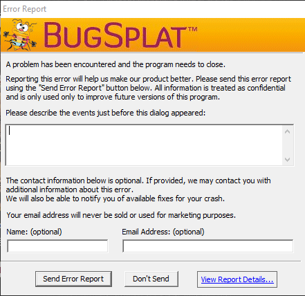 Bugsplat uyarısı nedir?