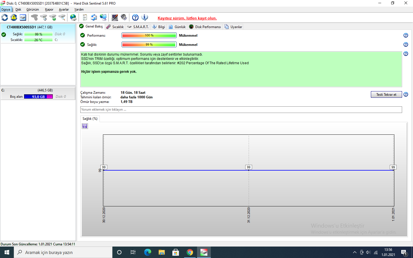Yeni sistemimde test sonuçlarım bunlar. 2 haftadır kullanıyorum, sağlık durumunun, %99 olması normal mi?