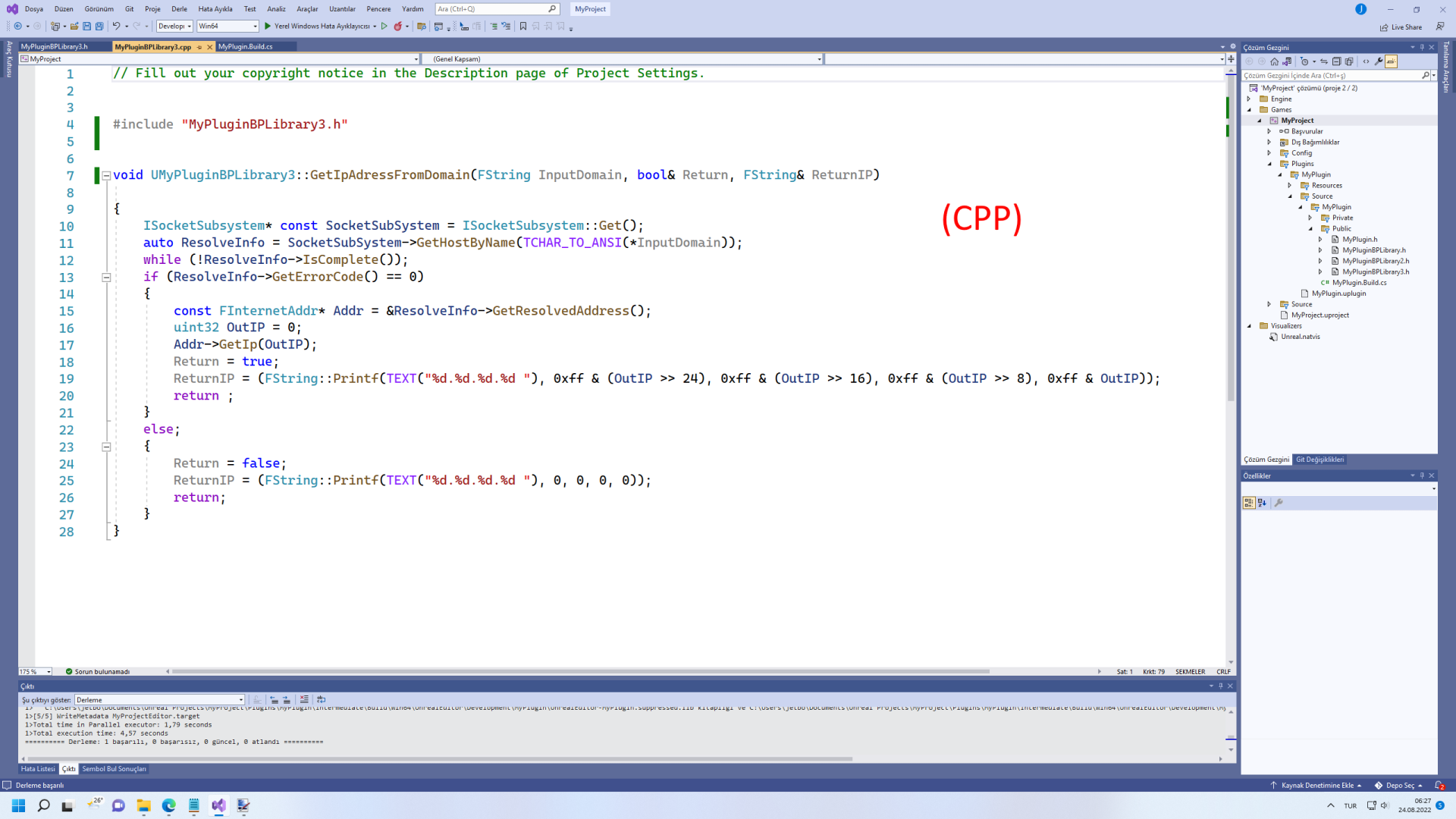 Hocam Unreal engine konusu fazla yok arkadaşlara yardımcı olur belki fonksiyon örneği;