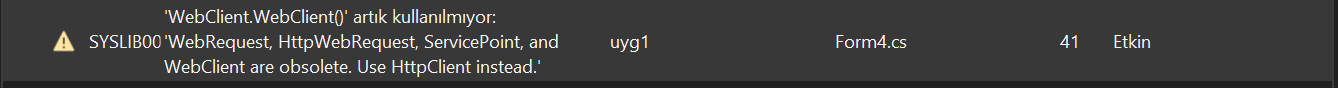 setup dosyası ile programı kurdugumda calısmıyor sadece visual studio uzerinden calısıyorWebClient deprecated olmus diyor. Yani artik guncellenmiyor. Bu bir hata degil, uyari. Uygulamanin calismasini engellemez.
