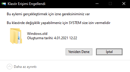 Klasörlere baktım boş. Sadece Windows.old'un içindeki Windows klasörü vb. var.